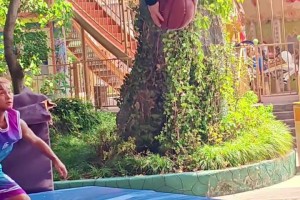一米八的女生扣篮如此轻松 可见弹跳力绝不一般!