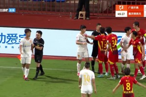 引发不满!铜梁龙球员把对方撞伤后摊手表示无辜,裁判挡在中间
