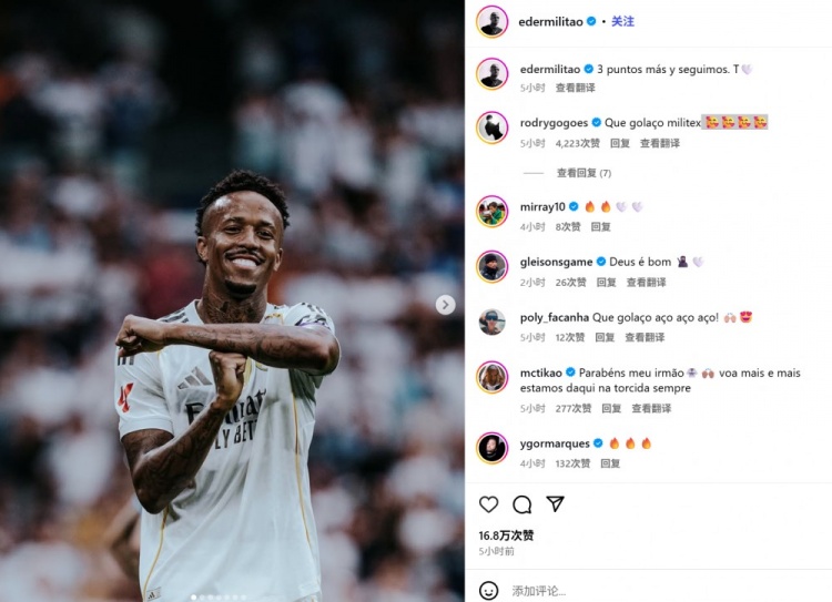 同胞罗德里戈也现身评论区:“多么甜蜜 ”。