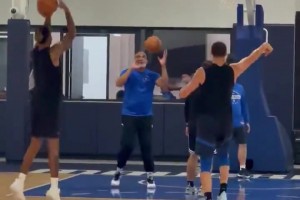 真准啊!克莱和拉塞尔在训练后进行三分PK