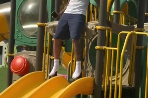 国外这哥们挺会玩啊!竟然把老婆当篮球玩