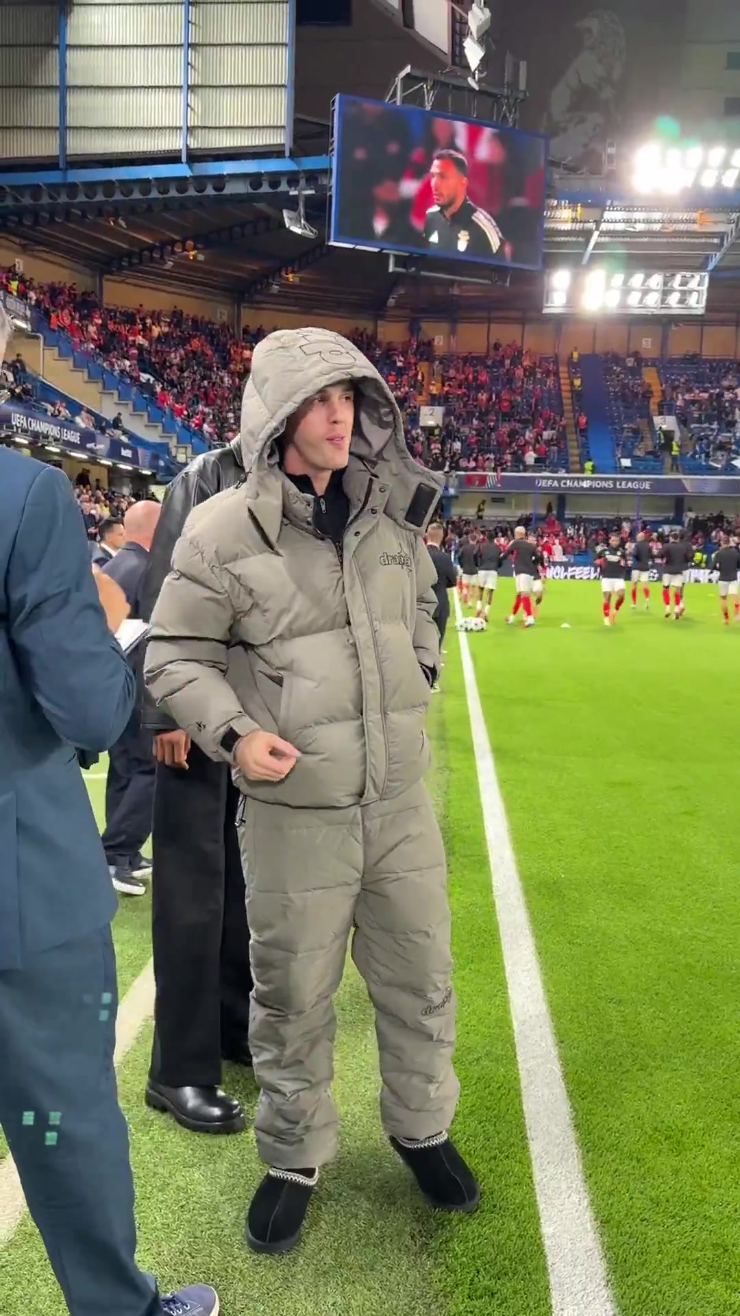 10月01日讯 欧冠联赛阶段切尔西1-0击败本菲卡,帕尔默现身斯坦福桥球场,穿着大棉衣+棉鞋看比赛。
